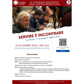 SERVIRE E’ INCONTRARE La Chiesa in compagnia degli ultimi 22 NOVEMBRE 2025 – Centro San Luigi, Via Bottesini 4, Crema PROGRAMMA 09.00 accoglienza e registrazione partecipanti 09.15… Read More