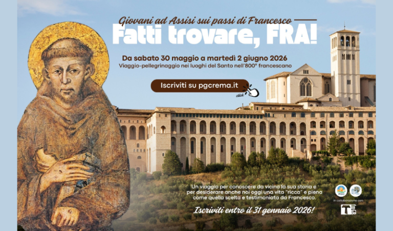 Il Servizio per la Pastorale Giovanile e degli Oratori e l’Azione Cattolica della Diocesi di Crema promuovono da sabato 30 maggio a martedì 2 giugno 2026 un viaggio-pellegrinaggio ad Assisi nei luoghi del Santo. Guidati dalle Suore Missionarie di Gesù Bambino potremo camminare, conoscere da vicino e pregare San Francesco e Santa Chiara: una possibilità per fermarsi, sostare, desiderare una vita “ricca” e piena come la loro.