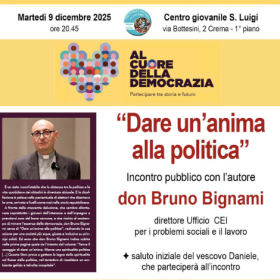 “DARE UN’ANIMA ALLA POLITICA” Martedì 9 dicembre, ore 20.45, al Centro San Luigi incontro con l’autore, don Bruno Bignami, direttore Ufficio CEI per i problemi sociali e il lavoro La… Read More